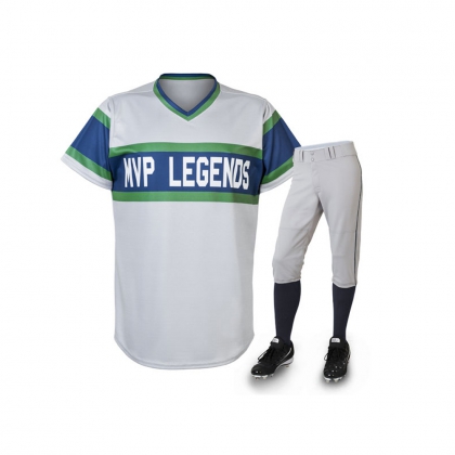 Choose from a variety of jersey types to suit your teams needs. Everything from short sleeve, two button short sleeve, full button short sleeve, and full button sleeveless jerseys,  With the bold and vibrant designs, these fully sublimated uniforms will make a statement on the field.