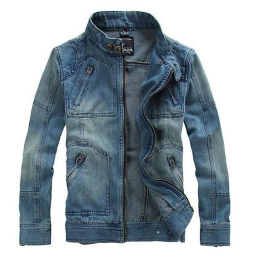 Denim & Faux Leather Viscose Lining Standard Collar Front Button Closure Blue and Black Color