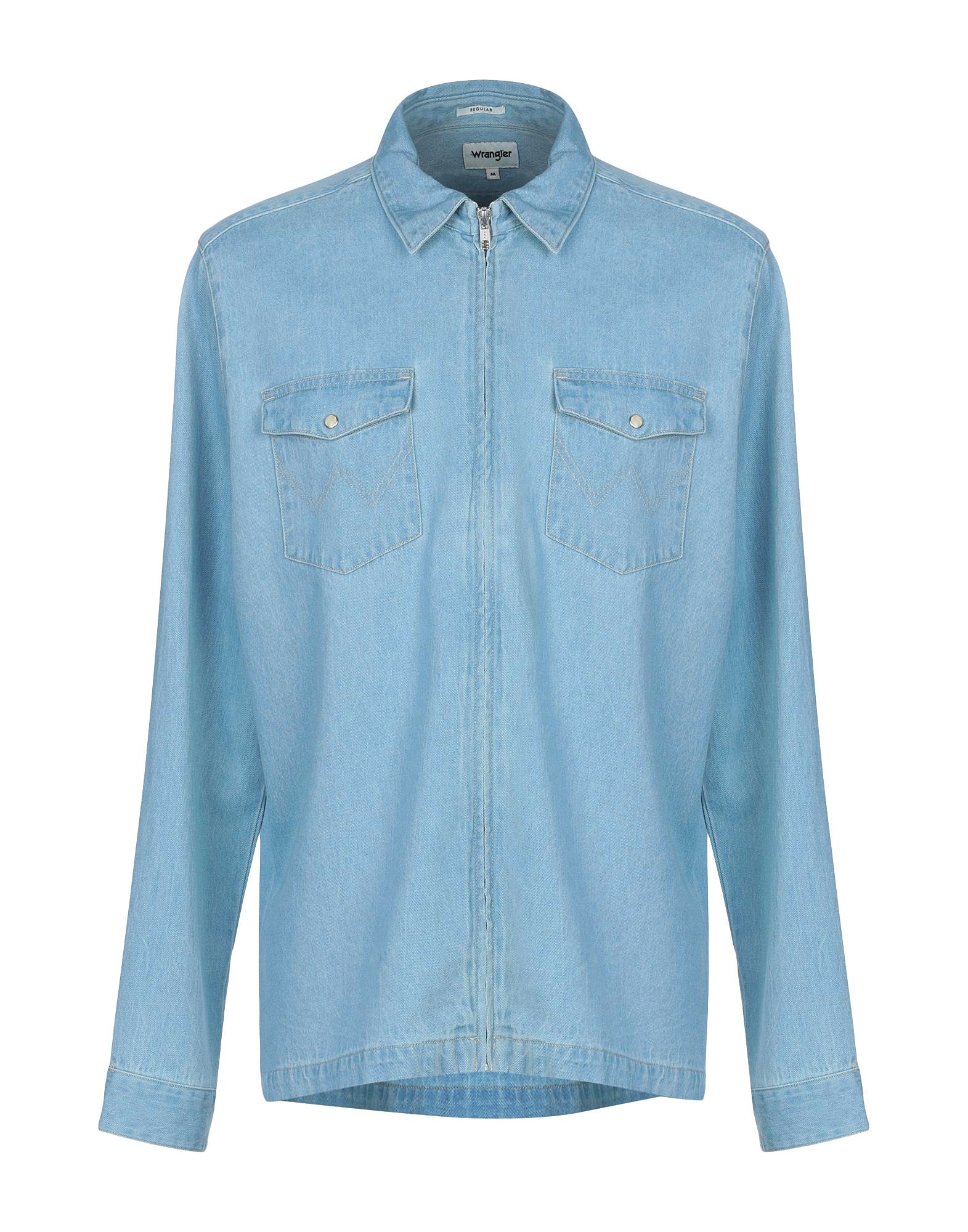 denim, faded, logo, solid colour, medium wash, long sleeves, classic neckline, buttoned cuffs, single-breasted , front closure, snap button fastening, multipockets